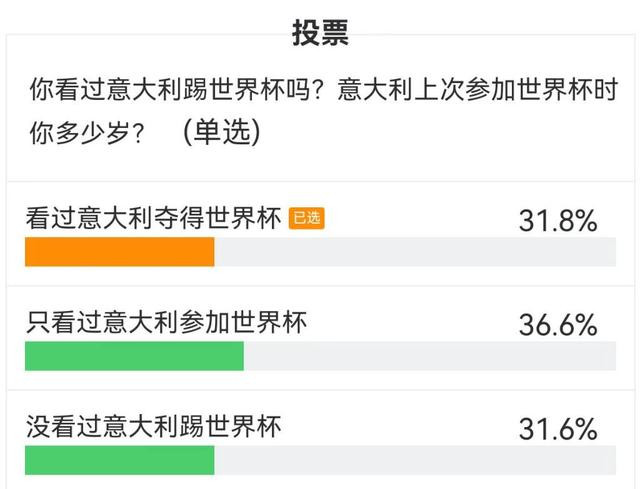 汇注上发起的网友投票,意大利果真太久没进过宇宙杯了
