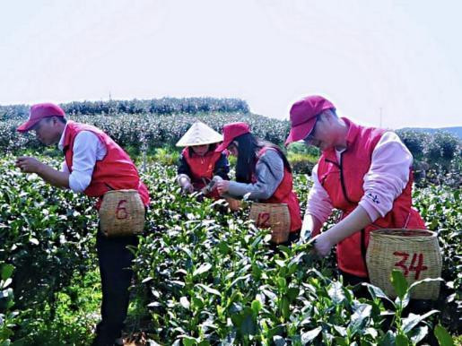 图为“香溢”志愿者助农采茶