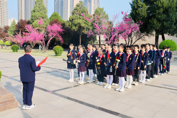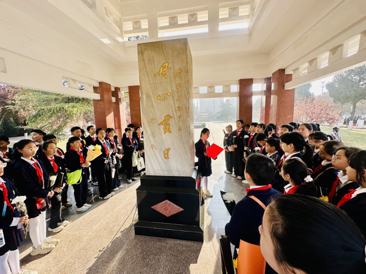 为深入驰念立异英烈,传承红色基因,厚植家国情感,郑州市二七区祥云路小学以党团队共建为载体,于4月1日黎明,组织党员代表、辘集熟习代表及五二中队举座队员走进郑州义士陵寝,开展“驰念立异英烈 传承红色基因”主题念念政课外本质行为,让师生在实地看望与千里浸式体验中罗致红色精神浸礼,让念念政培植在本质中落地生根。