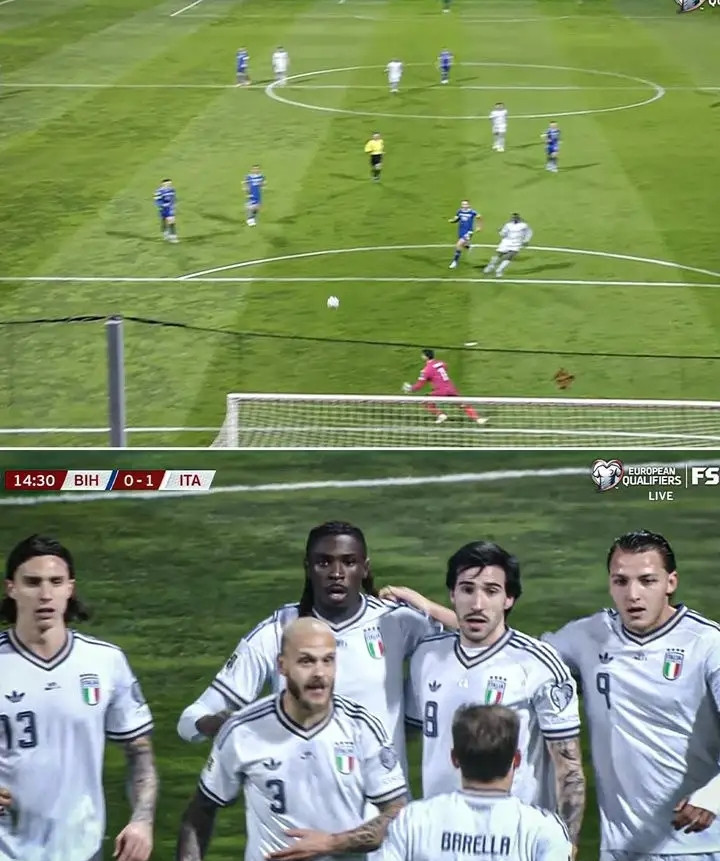 说真话,这场比赛的开局对意大利来说是好意思好的。第15分钟,波黑门将瓦西里送出“乌龙助攻”,巴雷拉断球后妙传基恩,后者络续球成功推射破门,意大利1-0跳跃。