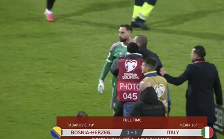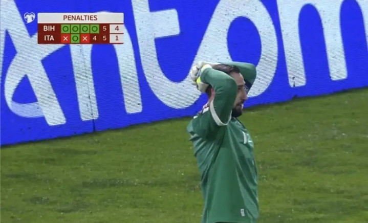 点球大战中,意大利球员的脚法仿佛被施了魔咒。埃斯托西波踢飞,克里斯坦特罚失……当波黑球员稳稳射中时,意大利球迷只可眼睁睁看着我方的球队又一次倒在了12码线前。