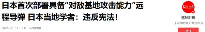日本初度部署具备“对敌基地膺惩才略”汉典导弹 日本当地学者:违背宪法!-2026-03-31 19:37·环球时报