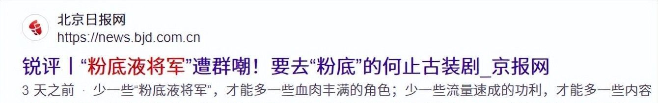 2.北京日报网:锐评丨“粉底液将军”遭群嘲!要去“粉底”的何啻古装剧