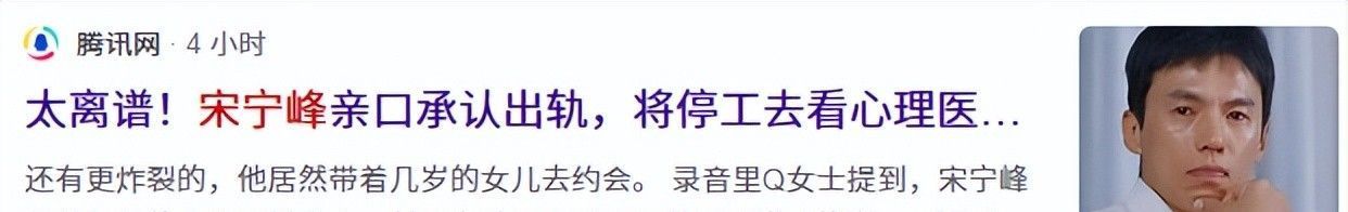 1.腾讯网:太离谱!宋宁峰亲口承认出轨,将停工去看热诚大夫,太太不肯仳离
