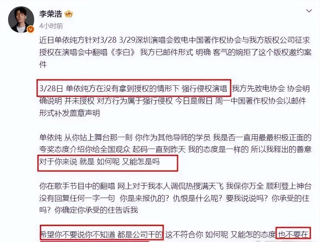 李荣浩下场撕版权