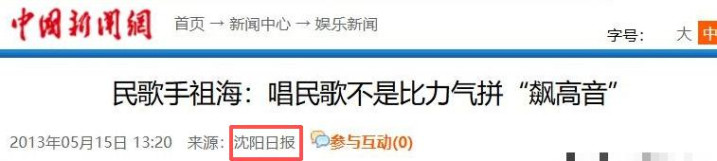 1、民歌手祖海:唱民歌不是比力气拼“飙高音”--沈阳日报