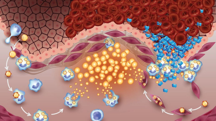 再把视野放到血管里面看一眼。正常血管内壁其实很光滑,血液流动顺畅。长久高反式脂肪饮食会让血管内皮细胞受损。内皮功能下逾期,血小板更容易黏附,炎症响应也会增多。