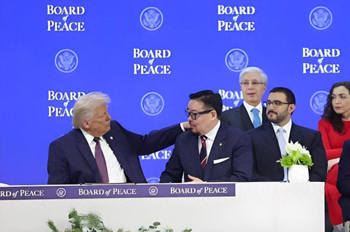 1月22日那天,在特朗普牵头搞的“和平委员会”署名庆典上,蒙古总理赞登沙特尔急匆忙赶过来签了字。那一刻,特朗普脸上堆着忻悦的笑,就地就张泉源,拍了拍他的肩膀。