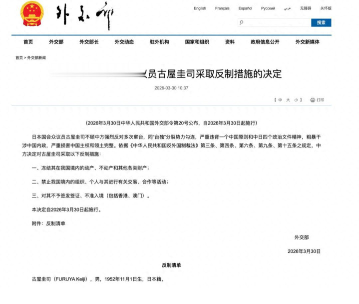 还有少量值得驻扎。此次反制令的发布,距离古屋圭司窜台唯有两周。中方莫得拖,也莫得徘徊。国台办先公开点名,给足告诫;对方莫得纠错,应付部立时照章制裁。通盘这个词进程,有告诫、有期限、有法律依据、有实践。