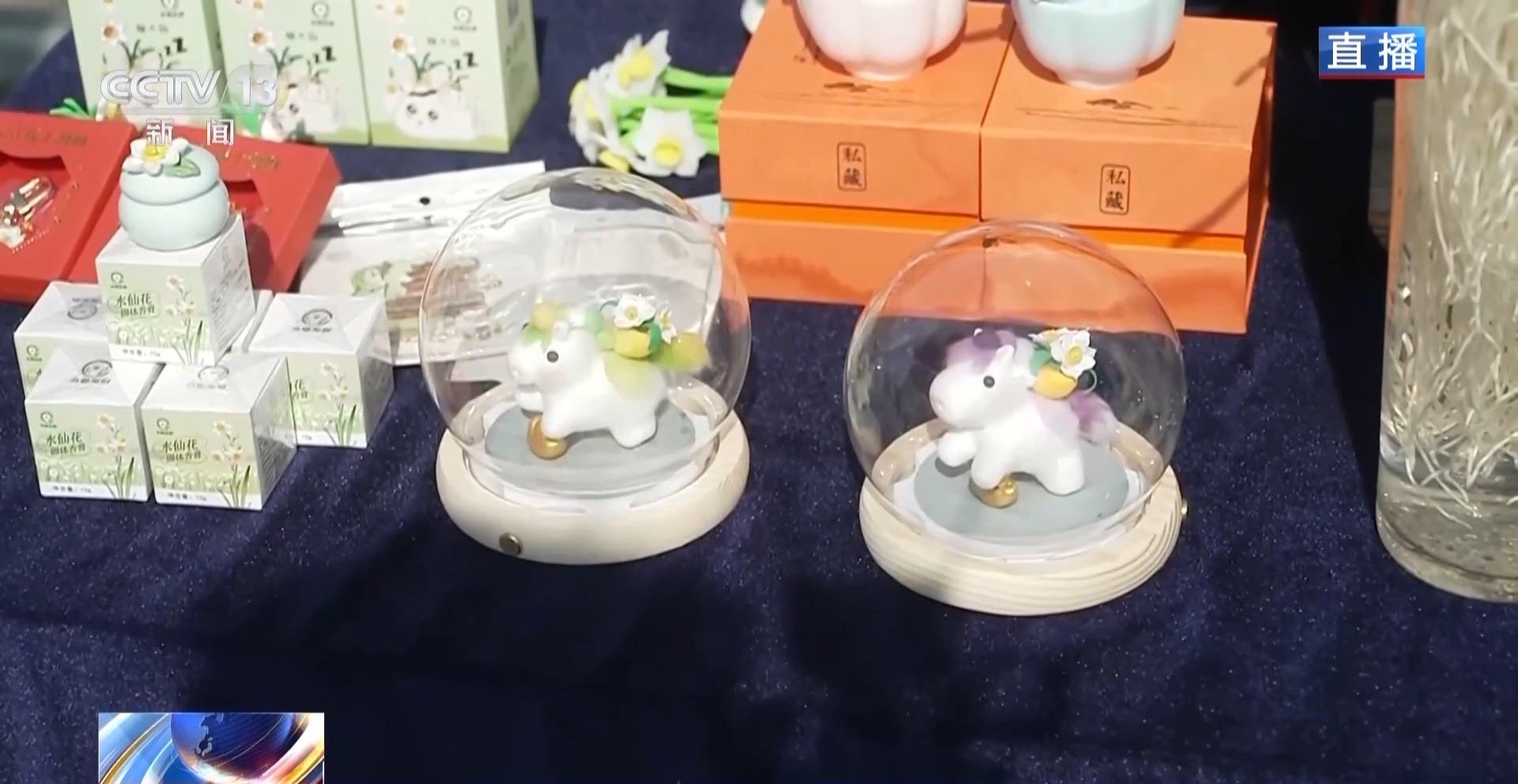 在这个市蚁合还有许多水仙的养殖文创家具,像水仙杯盏、香插、摆件、香膏等等。尤其本年是马年,还有以小马为造型的文创家具,十分应景。