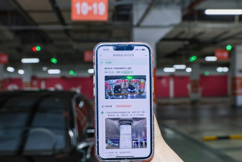 图组为:港珠澳大桥珠海公路港口滴滴候车区和上车点、杭州东站车位信息推送