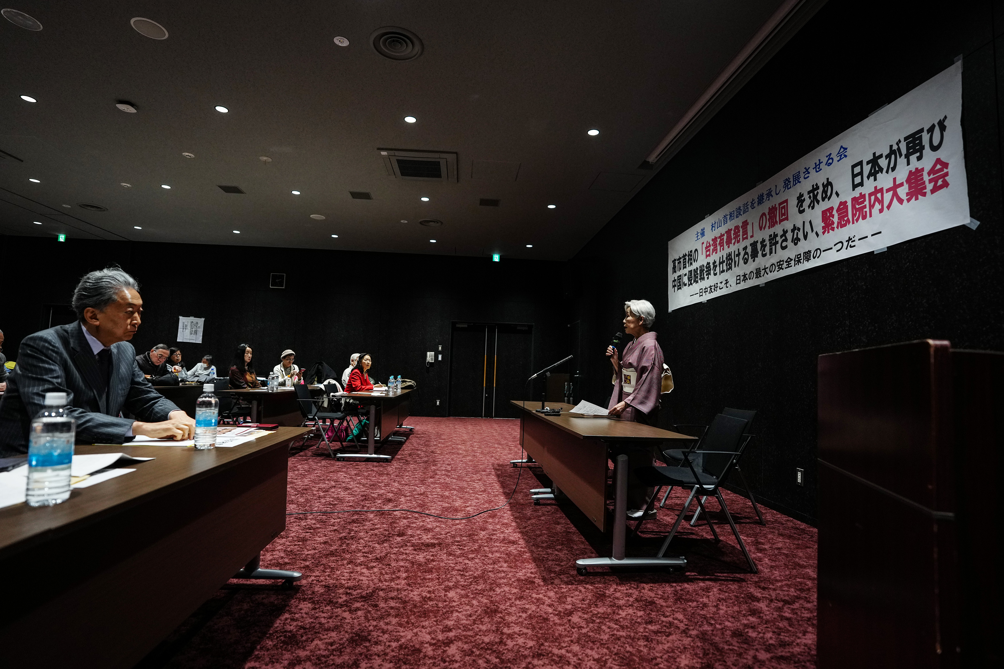 1月29日,在日本东京,日本学者在王人集上发言,月旦高市早苗军事延迟道路。新华社记者贾浩成摄