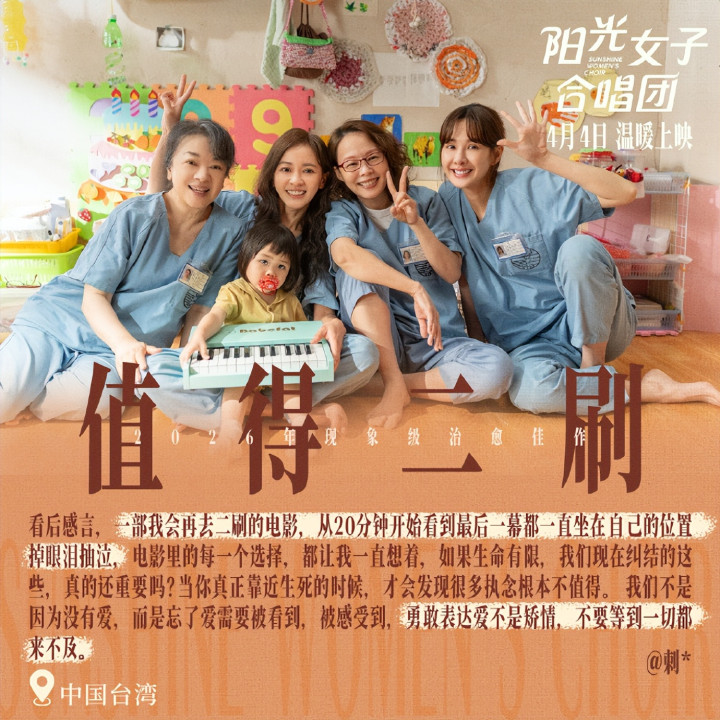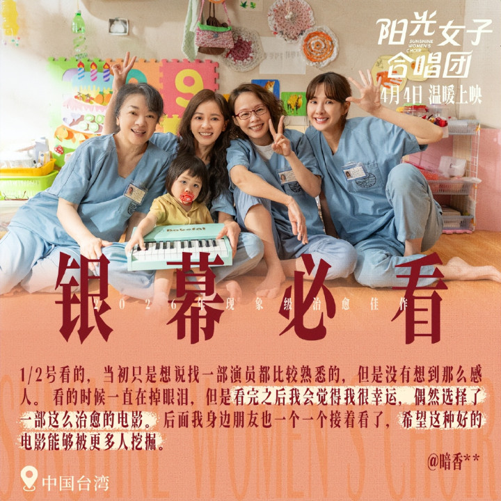 在发扬上映之前,《阳光女子齐唱团》还是交出了一份令东说念主赞佩的收货单。在中国台湾地区上映后,该片票房突破7.5亿新台币,一举摧折《天涯七号》保捏了18年的票房记录,成为台湾地区华语片影史票房冠军。更令东说念主瞩指标是,2026年1月24日,该片单日票房达到3500万新台币,刷新了自2016年以来台湾省电影单日最高票房记录。