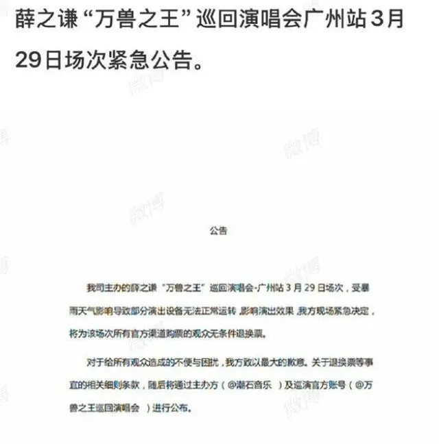 这场风云的伊始,再寻常不外。广州纠合两日降下强暴雨,雨水渗透演唱会现场的建树间,径直导致舞台音响系统出现故障,歌声传出时带着噪音,伴奏音效十足失真,不雅众花高价买来的门票,换来的是大打扣头的上演体验。放到当下的上演行业里,这种情况早有固定的惩处套路,主持方要么让歌手硬着头皮唱十足场,过后发一则苟简声明,把问题推给不可抗力的天气,草草安抚不雅众了事;要么径直中断上演,退票经过一拖再拖,拿出协议里的免责条目,把扫数攀扯推得鸡犬不留,铺张者只可自认厄运,连维权的门道都找不到。