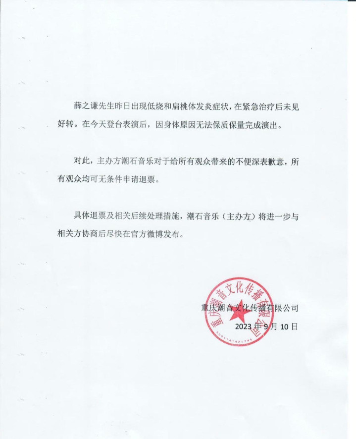 紧接着,他就地公布了三项惩处决策,全场不雅众的门票全额退还,一分钱都不剥削;从外地专程赶来的歌迷,来回机票和旅馆住宿用度全部由他承担;即便运行退票,剩余的上演也不会中断,剩下的歌曲全部免费唱完,不让任何一个不雅众白手而归。
