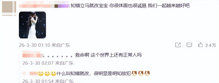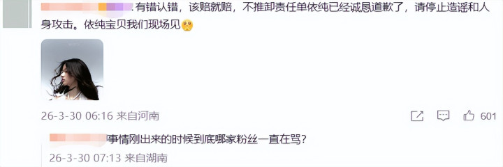 致使还有部分相比激进的粉丝,因为单依纯谈歉了而更怜爱她,在各个考虑区发表了一番“她都谈歉了你还思怎么”、“害她上了这样多黑热搜你别太过分了”、“侵权是错的但你也不该xxx”……之类的言论。