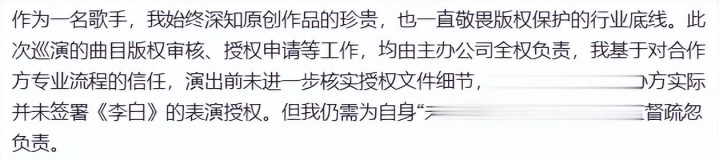 具体的侵权情形是,单依纯思在演唱会上翻唱《李白》,单依纯方问了中国著述权协会和李荣浩方的版权公司,双方都莫得给她授权,但她如故在3月28日的演唱会上唱了这首歌。