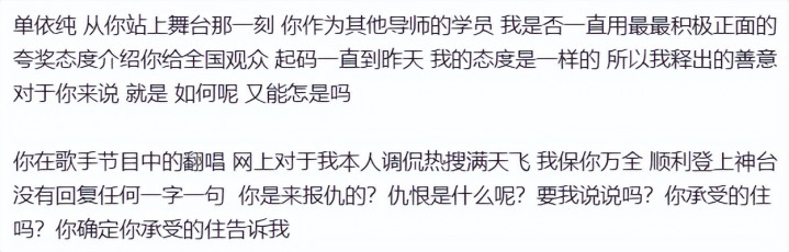 何如说呢,时髦其实不错相识,单依纯的初志八成是不但愿此次维权事件,最终高潮到双方粉丝混战、致使彼此网暴的经过。但在那时的情境下,这样说就很容易被网友怼,“到底是谁家粉丝在骂”。