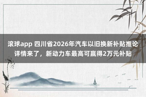 封面新闻记者易弋力 2月12日,四川省商务厅发布四川省2026年汽车以旧换新补贴推论详情。左证详情,适合关系条款要求的新动力车最高可赢得2万元补贴,燃油车最高可赢得1.5万元补贴。 汽车报废更新方面,2026年,对个东谈主破钞者报废2013年6月30日(含当日,下同)前注册登记的汽油乘用车、2015年6月30日前注册登记的柴油过甚他燃料乘...